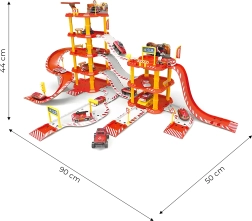¡Construye tu propia base de rescate! Este espacioso garaje de bomberos tiene 4 niveles en la parte principal y 2 niveles en la parte lateral, por lo que es ideal para aparcar, maniobrar y vivir historias llenas de acción. No faltan la gasolinera, el heliopuerto en la azotea, barreras, señalización vial y semáforos para un juego auténtico.