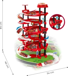 Este garaje de estacionamiento de bomberos XXL ofrece a los niños horas de diversión creativa. Gracias a sus cinco niveles con rampas sinuosas, ascensor funcional y zona de aterrizaje para helicóptero, los pequeños conductores pueden simular tráfico real y operaciones de rescate. Luces y 8 efectos de sonido (sirenas, claxon, arranque del helicóptero, etc.) aportan mayor realismo al juego.