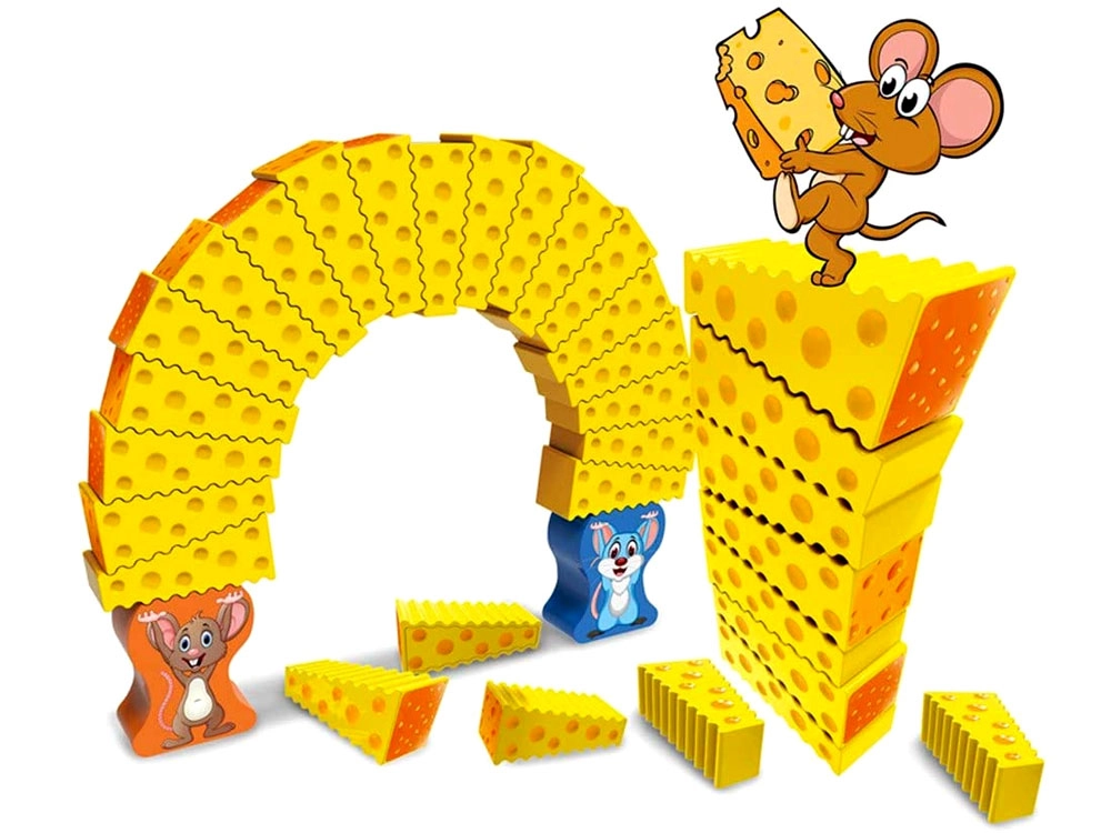 El juego de apilar lleva las habilidades mano-ojo a un nivel superior. Los bloques de queso y las figuritas de ratón crean un desafío dinámico.