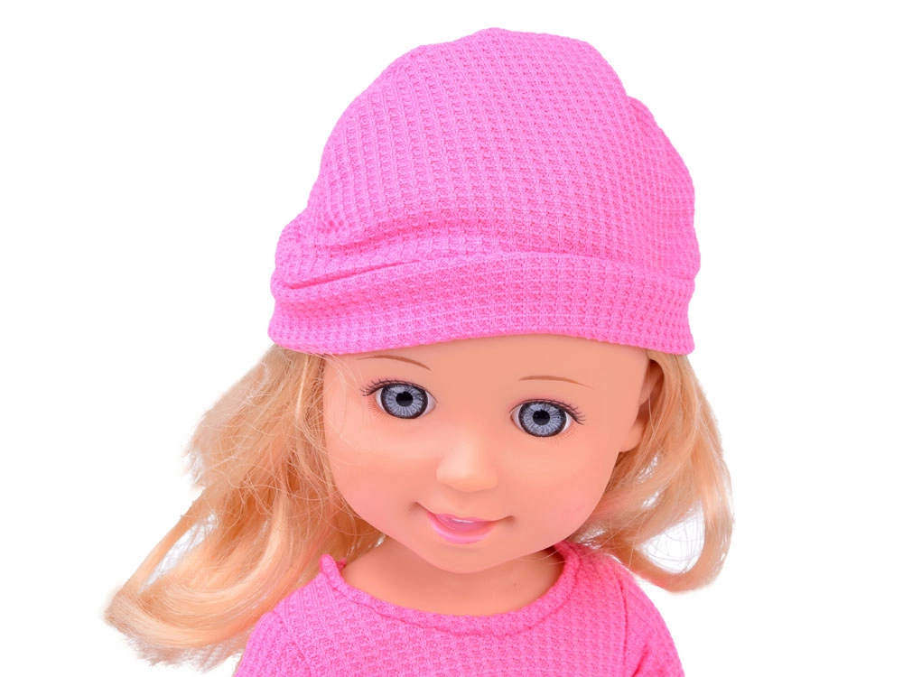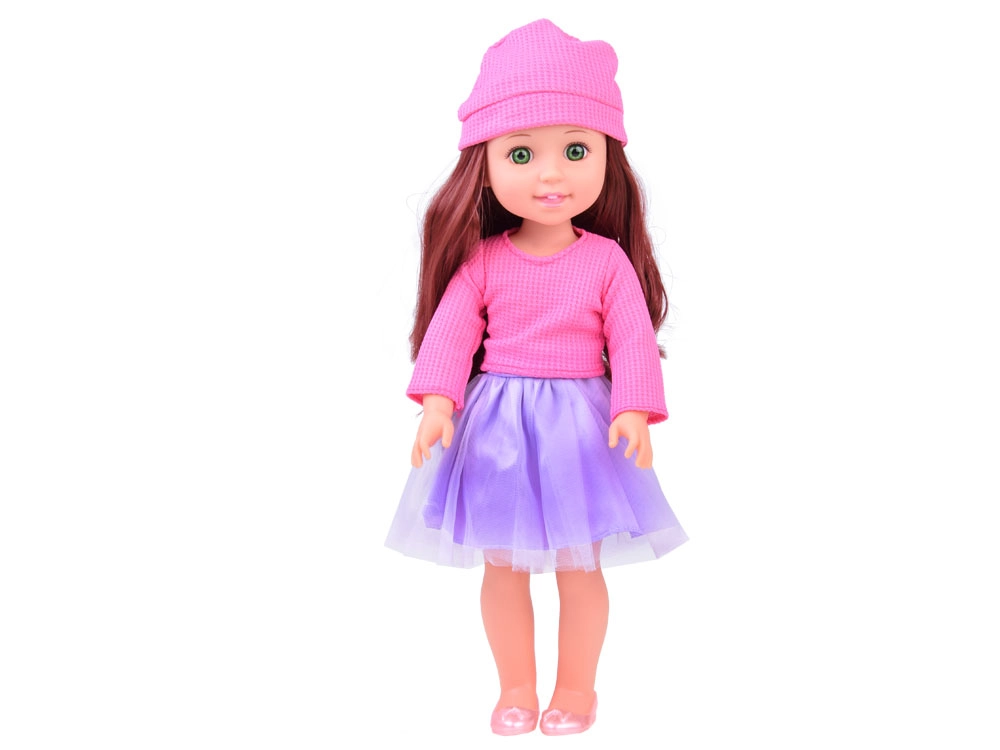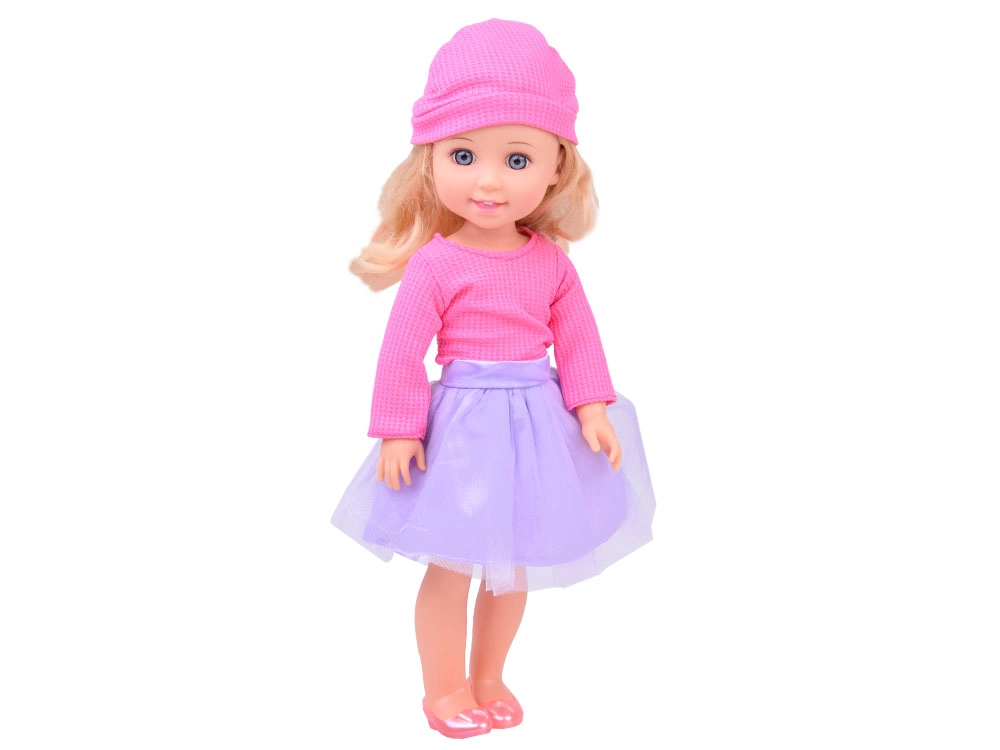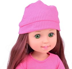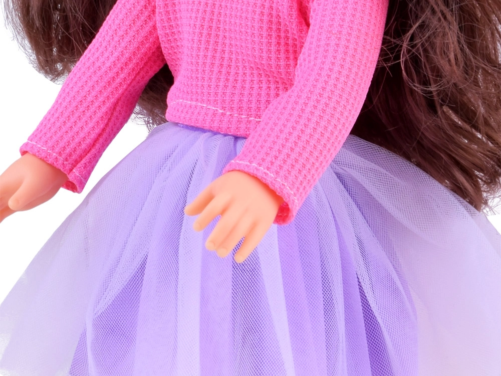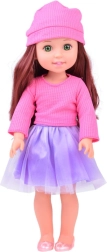 La elegante muñeca, de 36 cm de altura, es la compañera ideal para las pequeñas. Gracias a su largo cabello castaño ondulado, que puede peinarse y estilizarse, potencia el sentido de la moda infantil y desarrolla habilidades de cuidado del cabello. Viste una blusa rosa con estilo y una falda morada, y junto con los zapatos y el gorro rosas ofrece un look elegante. Los brazos y piernas móviles facilitan colocar la muñeca en diferentes posiciones, lo que favorece el juego creativo e imaginativo.