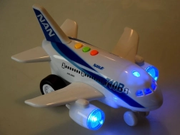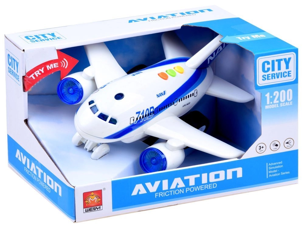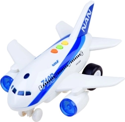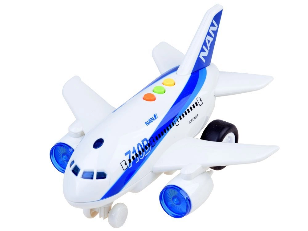 Juguete divertido para pequeños pilotos: avión personal interactivo con tracción por fricción, sonidos realistas y luces intermitentes en la cabina y en los motores. Basta con pulsar los botones de colores para escuchar la voz de la azafata (EN) y el sonido de un avión despegando. Fabricado en plástico con colores atractivos, ideal para el juego creativo en casa o de viaje.