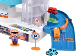 El paquete incluye 6 cochecitos, señales de tráfico, una figura de guardia y pegatinas para decorar, para que el garaje luzca como un aparcamiento real.