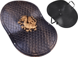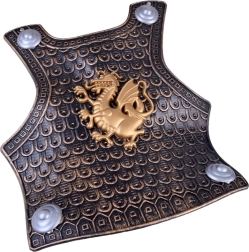 Relieve detallado y decoración en estilo oro viejo con emblema de dragón que aporta un carácter medieval e impresionante al disfraz.