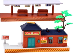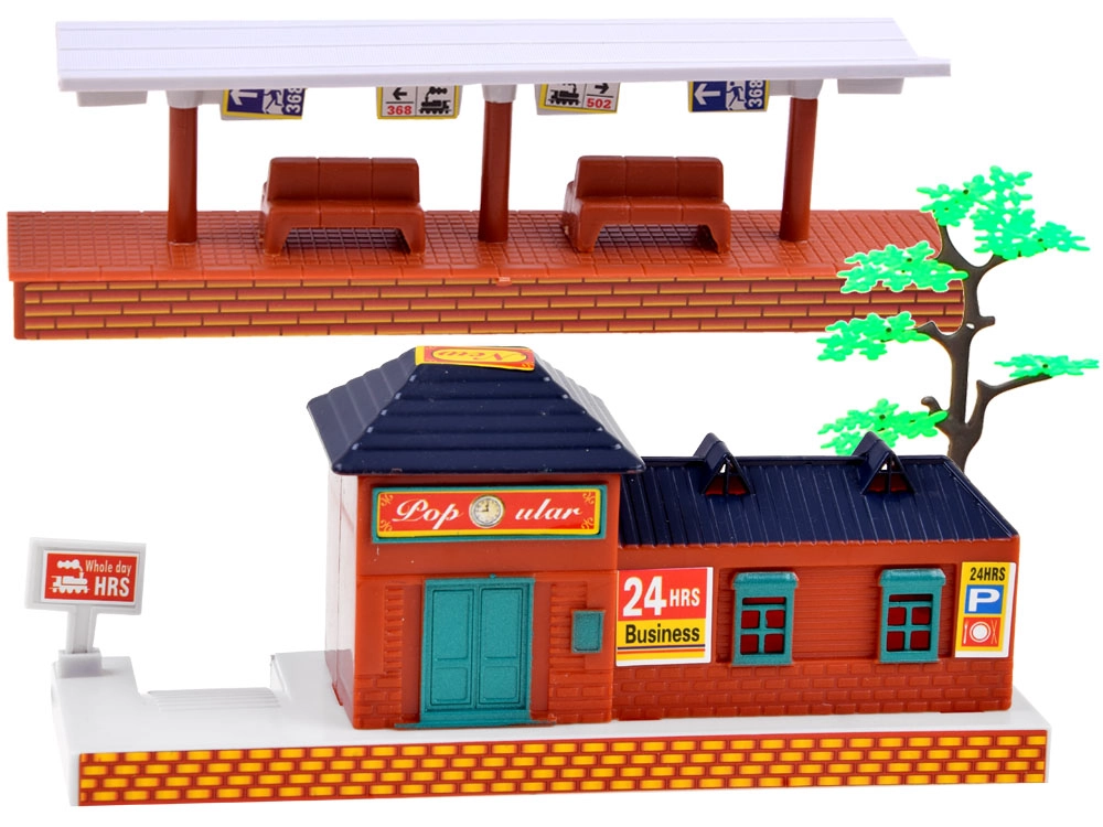Ensambla la vía de 213 × 120 cm con 22 piezas de rieles, añade la estación, la sala de espera y árboles, y crea tu propia escena ferroviaria.
