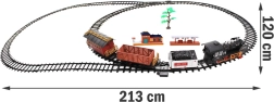 Este tren eléctrico cuidadosamente elaborado encantará a pequeños y grandes aficionados al ferrocarril. Durante la marcha, la locomotora de vapor ilumina el faro delantero, emite sonidos de un tren real y, tras añadir agua, genera un efecto de humo en la chimenea. Gracias al control remoto, siempre tendrás la velocidad y la dirección bajo control.
