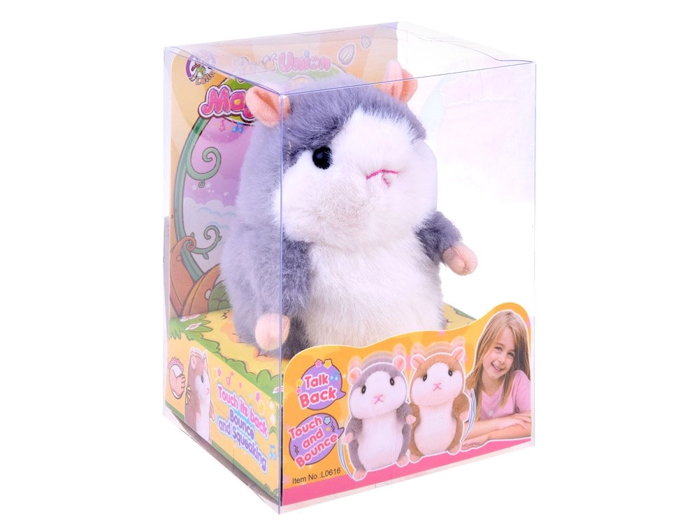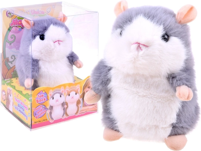 El hámster repite fielmente palabras y frases cortas de forma divertida. Ideal para juegos, aprendizaje y diversión compartida.