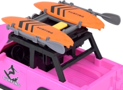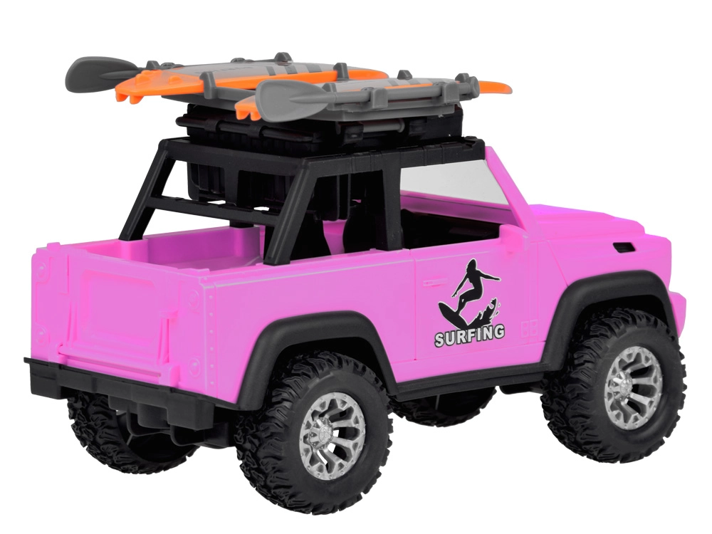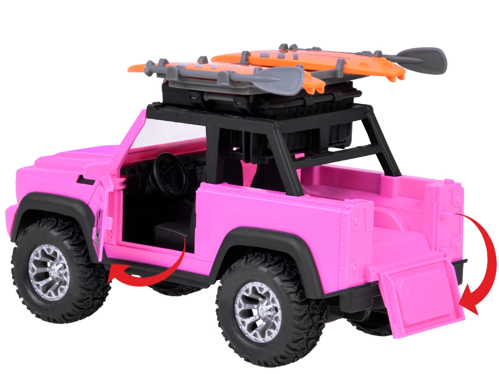 Descubre la diversión a tope con este coche off-road rosa que inspira a los niños a jugar de forma creativa y a vivir aventuras. Los detalles realistas, como las puertas abatibles y el maletero basculante, se complementan con efectos de luz y sonido para una experiencia aún mayor.