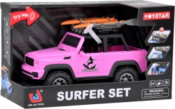 Gracias a sus robustas ruedas de goma con dibujo marcado, el vehículo supera cualquier obstáculo “todoterreno” del juego. El portaequipajes con dos tablas de surf subraya la temática de playa y viajes, por lo que el coche encaja perfectamente en cualquier mundo de fantasía infantil.