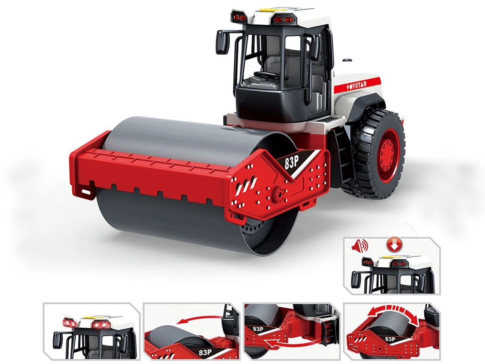El gran rodillo de carretera está diseñado para simular el funcionamiento real de una máquina de obra. Está equipado con partes móviles y elementos interactivos que fomentan la creatividad y las habilidades motoras de los niños. El juguete puede avanzar, generar sonidos realistas de motor y emitir luces intermitentes, permitiendo que los niños se sientan como verdaderos operadores de maquinaria de construcción.