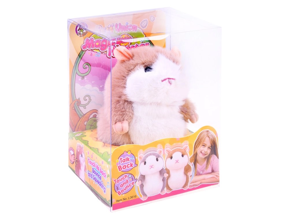 Este hámster interactivo escucha lo que dices y luego lo repite de forma divertida con su graciosa voz. Mientras habla, se balancea rítmicamente con el cuerpo, lo que hace reír al instante a los niños. Es agradablemente suave, por lo que también encanta como compañero mimoso para la cama.