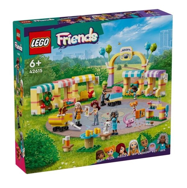 Organiza un alegre día de adopción de animales y ayuda a Paisley a encontrar la mascota ideal para sus nuevos dueños. El set incluye puestos de colores, casitas para animales, un arco con el letrero “Adopt”, una acogedora zona de picnic y una tienda de comida. Cinco animalitos —cerdito, gato, hámster, erizo y perro— esperan su nuevo hogar.