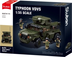 Sluban Typhoon es un set de construcción de calidad para todos los aficionados a la tecnología militar y al juego de acción. El modelo a escala 1:35 destaca por sus detalles realistas, como la torreta giratoria, partes abatibles y accesorios auténticos para las minifiguras. El set está fabricado en plástico ABS resistente y seguro e incluye un manual claro.