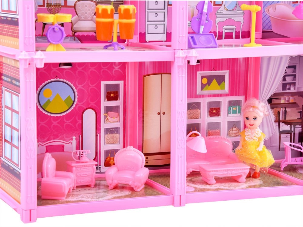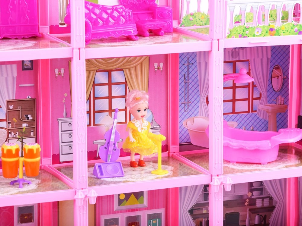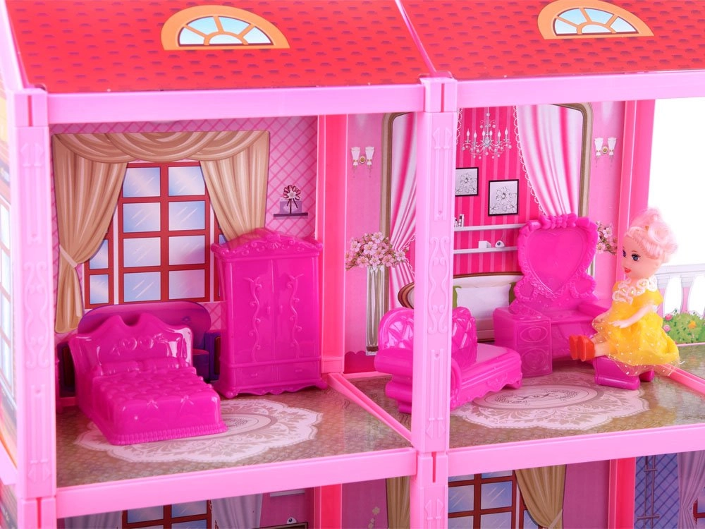 La gran casa de muñecas rosa está diseñada con atención al detalle y alta calidad de fabricación, lo que garantiza una larga vida útil y seguridad durante el juego. Su diseño rosa y atractivo resulta especialmente llamativo para las pequeñas, que pueden crear su propio mundo lleno de aventuras.