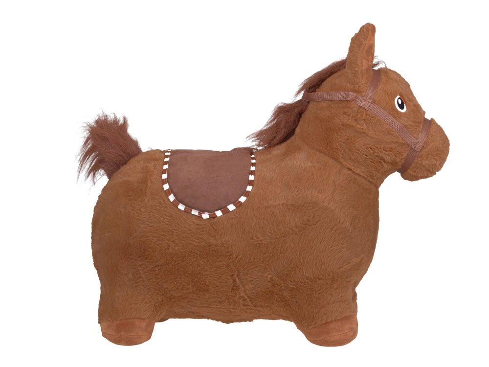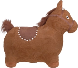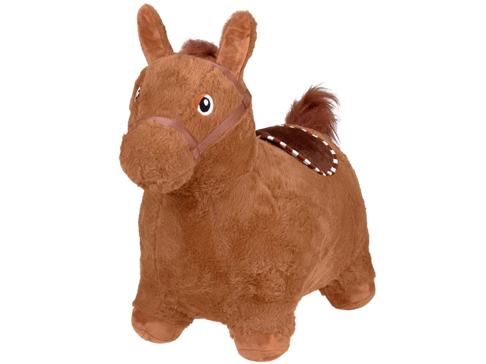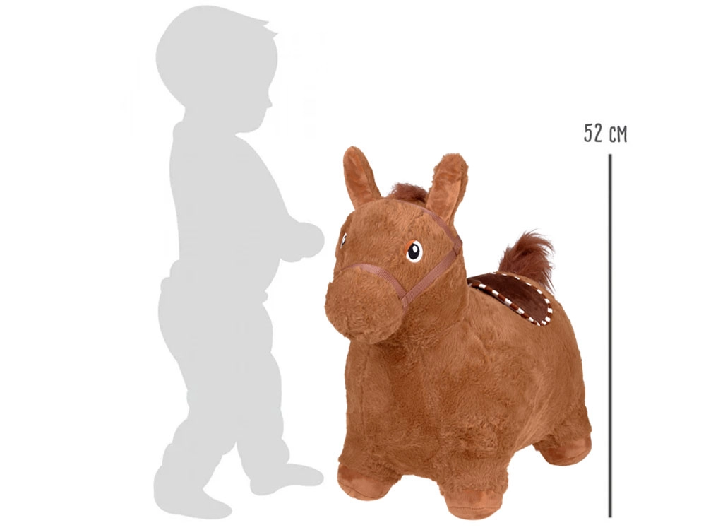 Adorable caballito saltarín de peluche para niños que ofrece horas de diversión activa en casa y en el jardín. Gracias a su cuerpo inflable y funda suave, es estable, seguro y agradable al tacto. Saltar sobre el caballito favorece el equilibrio, la coordinación y fortalece los músculos, mientras que el silbato integrado entre las orejas añade efectos de sonido alegres al juego. El paquete incluye una bomba para un inflado sencillo.