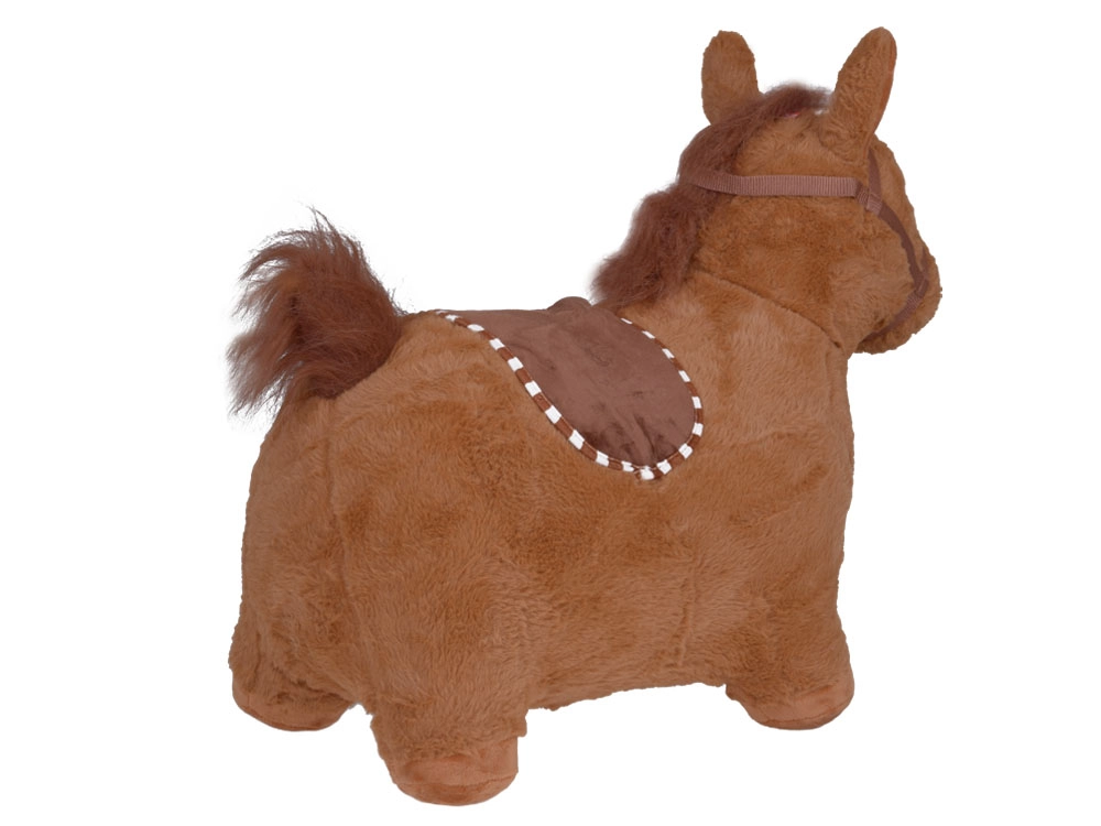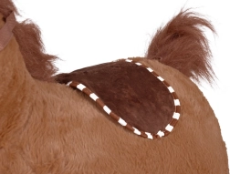 La cálida funda con sillín, brida y una abundante crin convierte al caballito en un compañero favorito para jugar y abrazar.