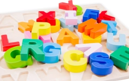 Descubre un divertido puzzle de madera con el abecedario para niños a partir de 2 años. Las letras de colores están adaptadas a las manos pequeñas, por lo que son fáciles de manipular. El juguete favorece el desarrollo de la motricidad fina, la coordinación mano–ojo y el aprendizaje natural a través del juego. Dimensiones: 300 × 300 × 8 mm.