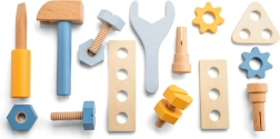 Descubre el juego de herramientas de madera para pequeños manitas a partir de 3 años, que combina diversión y aprendizaje. El set incluye 16 piezas (martillo, destornillador, llave, clavos, tornillos, engranajes) y favorece la motricidad fina, la coordinación mano-ojo y la resolución de problemas. Fabricado con madera 100% certificada FSC para un juego seguro y sostenible.