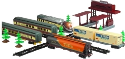 Este gran circuito de trenes FENFA ofrece un aspecto realista y muchas posibilidades para montar las vías en distintas formas y circuitos. Gracias a la locomotora a pilas, el tren realmente se pone en marcha y crea la atmósfera fiel de una estación ferroviaria. El set es ideal para momentos en familia y para el juego en solitario.
