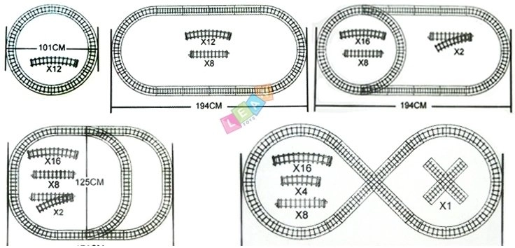 Ensamblar diferentes formas de circuitos y aprovechar los desvíos para crear longitudes y ramales según la imaginación del niño.