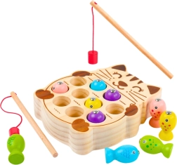 El juego ayuda a desarrollar la motricidad fina y la coordinación mano-ojo a través de la divertida actividad de pescar peces.
