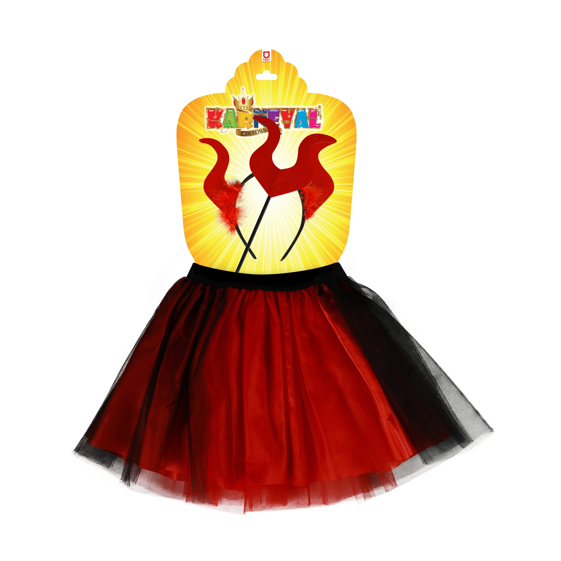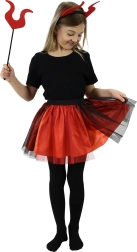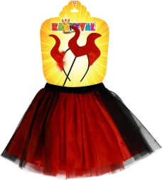 - Falda tutú roja y negra de 30 cm de largo, ideal para un movimiento cómodo.