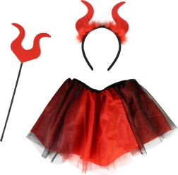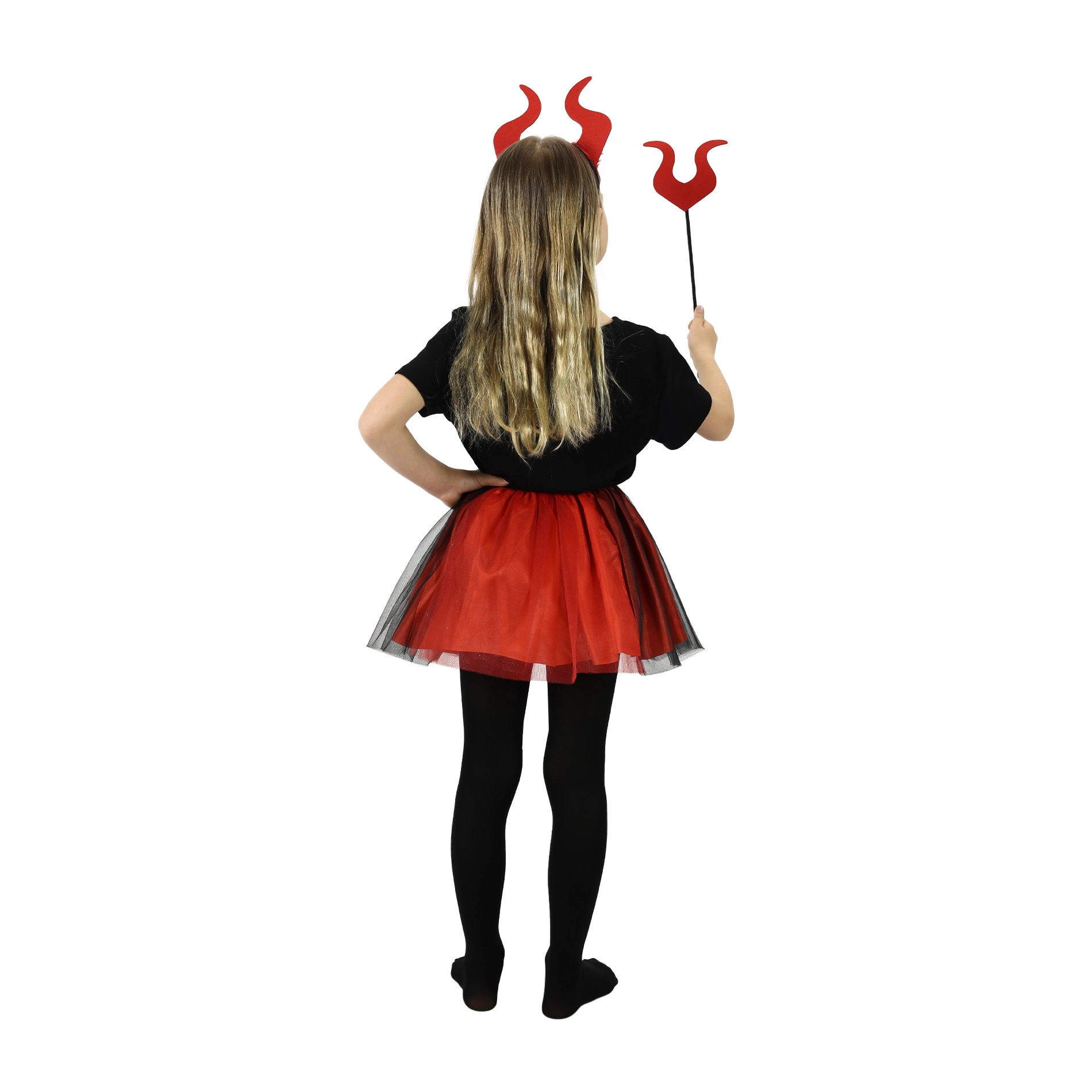 Enriquece el armario de tu pequeña diablilla con este disfraz mágico, perfecto para Halloween, carnavales o fiestas temáticas. Este conjunto perfectamente combinado incluye: