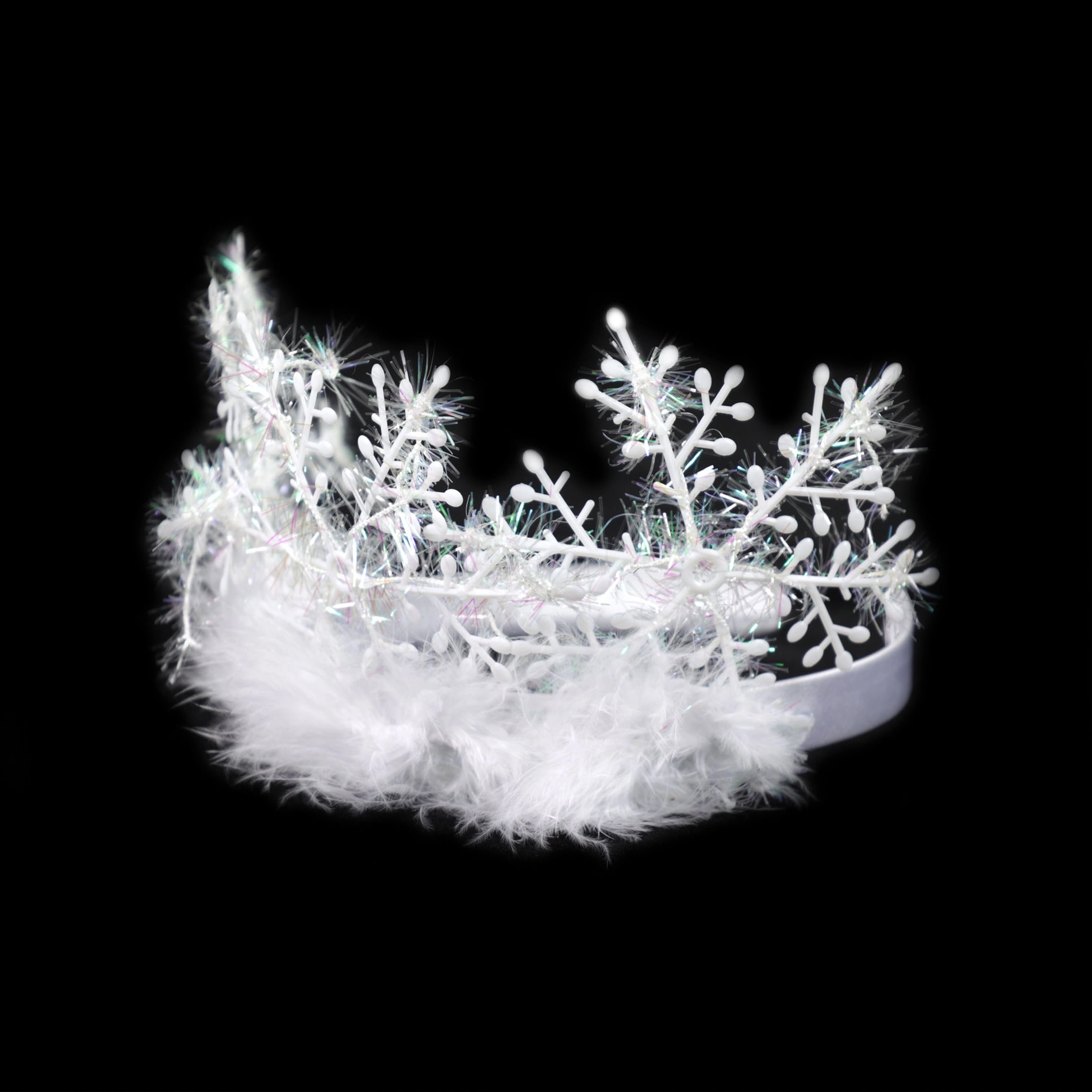 Esta encantadora corona es la manera perfecta de completar el disfraz de una pequeña princesa o reina del invierno. Gracias a su diseño original con copos de nieve detallados y plumas suaves, la corona llama la atención a primera vista.