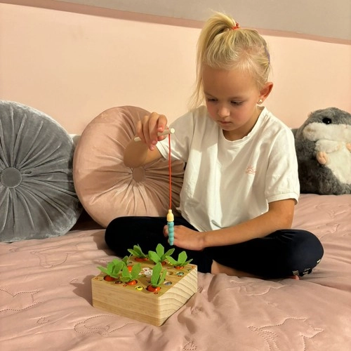 Siguiendo los principios Montessori, los niños pueden sumergirse en el papel de jardinero creativo y aprender de forma divertida a plantar y cosechar zanahorias o jugar con la caña magnética. Este producto es ideal para el desarrollo de la imaginación y la creatividad infantil.