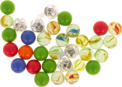 Incluye 33 canicas, de las cuales 5 parpadean con LED de colores. Los efectos de luz invitan a probar nuevos recorridos y alargan el tiempo de juego.