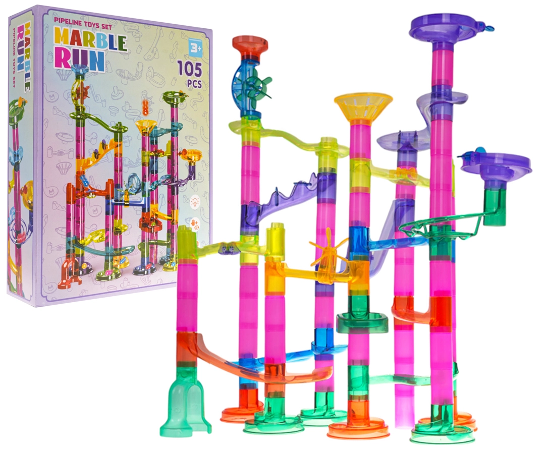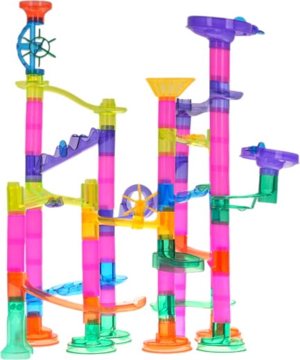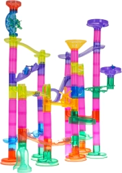 Construye tu propia pista de canicas con un completo set de 105 piezas y disfruta de horas de diversión creativa. Las piezas de colores y transparentes permiten a los niños a partir de 3 años construir diferentes recorridos, mientras que las 33 canicas, incluidas 5 con luces a pilas, dan vida al juego. Esta pista desarrolla la creatividad, la motricidad fina, la coordinación mano-ojo y enseña pensamiento lógico y paciencia.