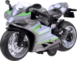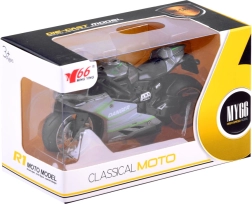El sistema de retroceso es sencillo: coloca la moto sobre una superficie plana, échala hacia atrás y suéltala — el modelo saldrá disparado hacia adelante como un auténtico corredor. El aspecto realista, los detalles bien logrados y la suspensión trasera funcional proporcionan horas de diversión.