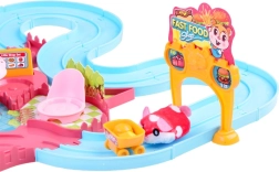El paquete incluye todo para divertirse al instante: figura de hámster, torre, tobogán, señales y carteles, zona de asientos, caja registradora, carrito de la compra y adorables accesorios como patatas fritas, hamburguesa y bebida. Gracias a sus colores vivos y elementos interactivos, es un regalo ideal para niños que aman las escenas de acción y de juego de roles.