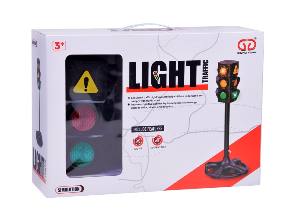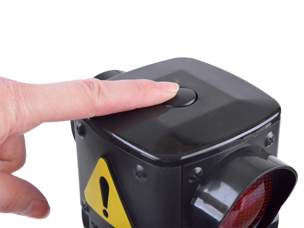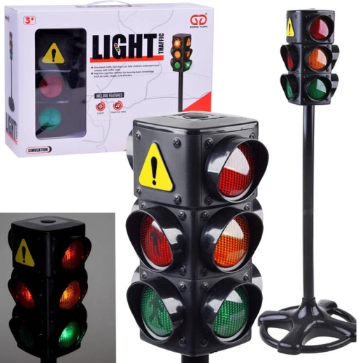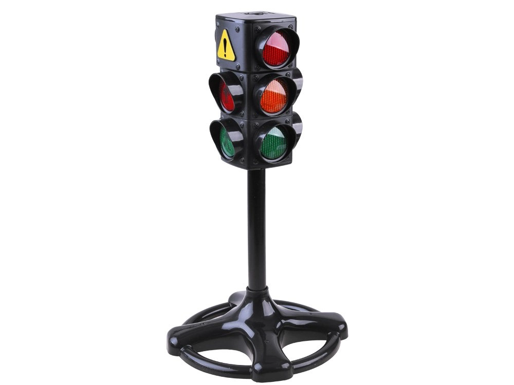 Tres luces claramente visibles — roja, ámbar y verde — ayudan a los niños a comprender el significado de cada señal y a practicar un cruce seguro.