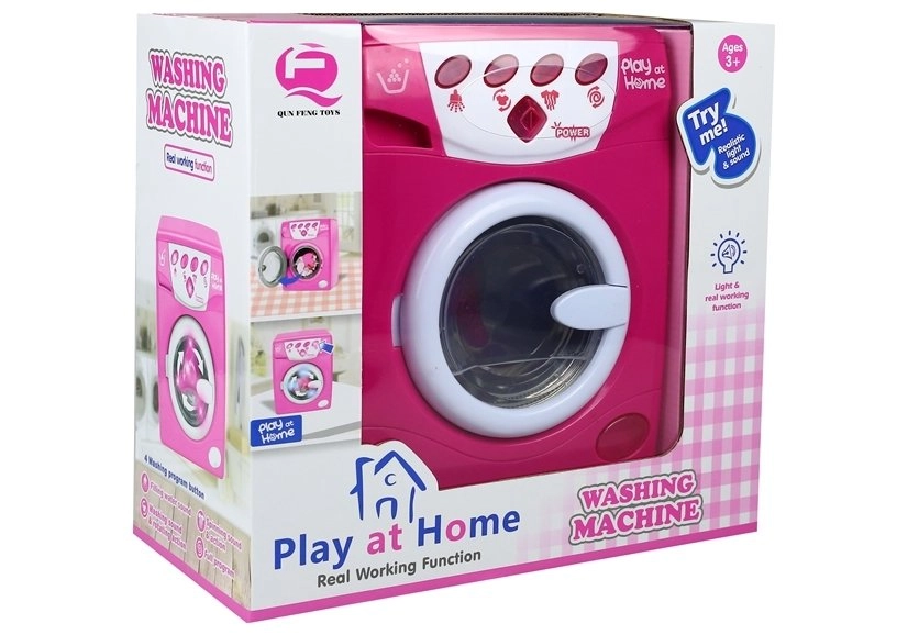 La lavadora infantil rosa para juego de hogar ofrece un lavado realista con programas de lavado, aclarado y centrifugado. Incluye efectos de luz y sonido, puerta abatible y manejo sencillo, para que los niños a partir de 3 años disfruten de un juego de roles creativo y educativo. Incluye alimentación 3× AA y caja de regalo.