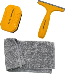 - Accesorios completos: escobilla, esponja, paño
