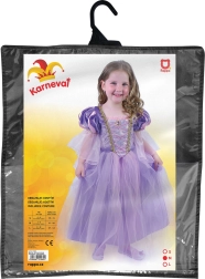 Los detalles elaborados en tonos violetas combinados con ribete dorado dan al disfraz un aspecto festivo, ideal para carnaval, cumpleaños y disfraces en casa.
