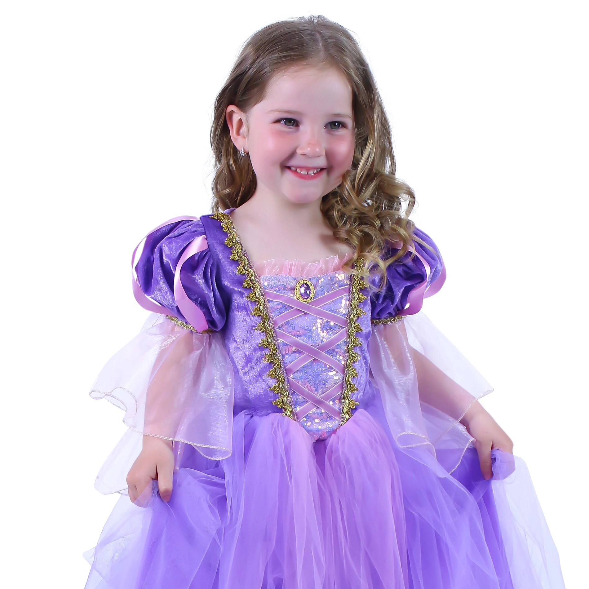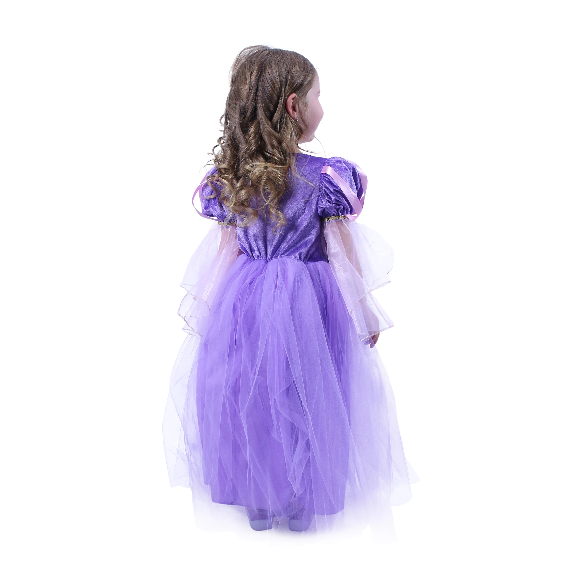 Deja brillar la fantasía infantil con este mágico vestido de princesa que enamora por su suave brillo, mangas abullonadas y voluminosa falda de tul. Gracias al corte pensado y a los materiales ligeros, el vestido se lleva con agrado y se pone fácilmente.