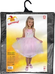 Encanta a la pequeña coqueta con este disfraz rosa de princesa cisne. El vestido tiene una falda de tul voluminoso con pétalos y bolitas blancas para un efecto de cuento, mientras que el corpiño está adornado con un delicado bordado de cisne. Ideal para carnaval, fiestas y juegos de disfraces en talla M para niñas de 6–8 años (117–128 cm).
