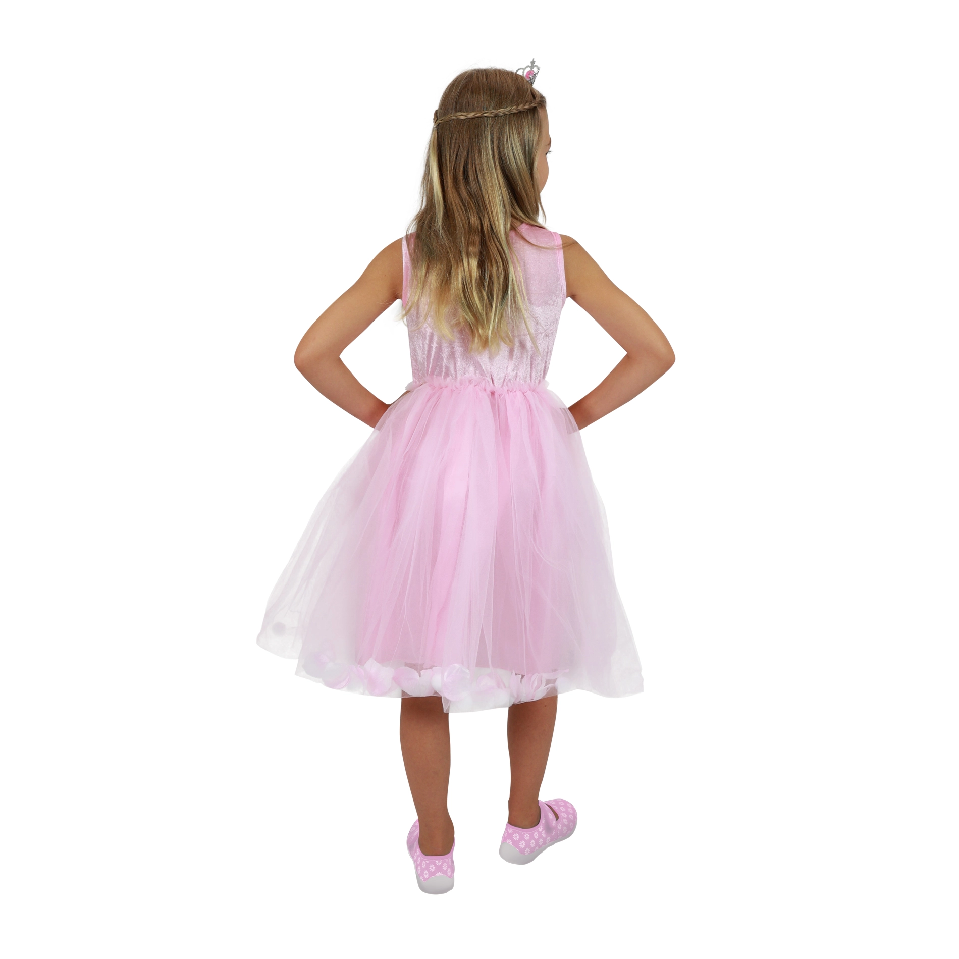 El vestido rosa de princesa cisne aporta magia a cada día. La ligera capa de tul sobre la enagua satinada crea un aspecto esponjoso y hace que la falda ondee de forma preciosa al moverse. La parte superior con motivo de cisne resulta delicada y elegante, para que tu niña se sienta como una auténtica princesa.