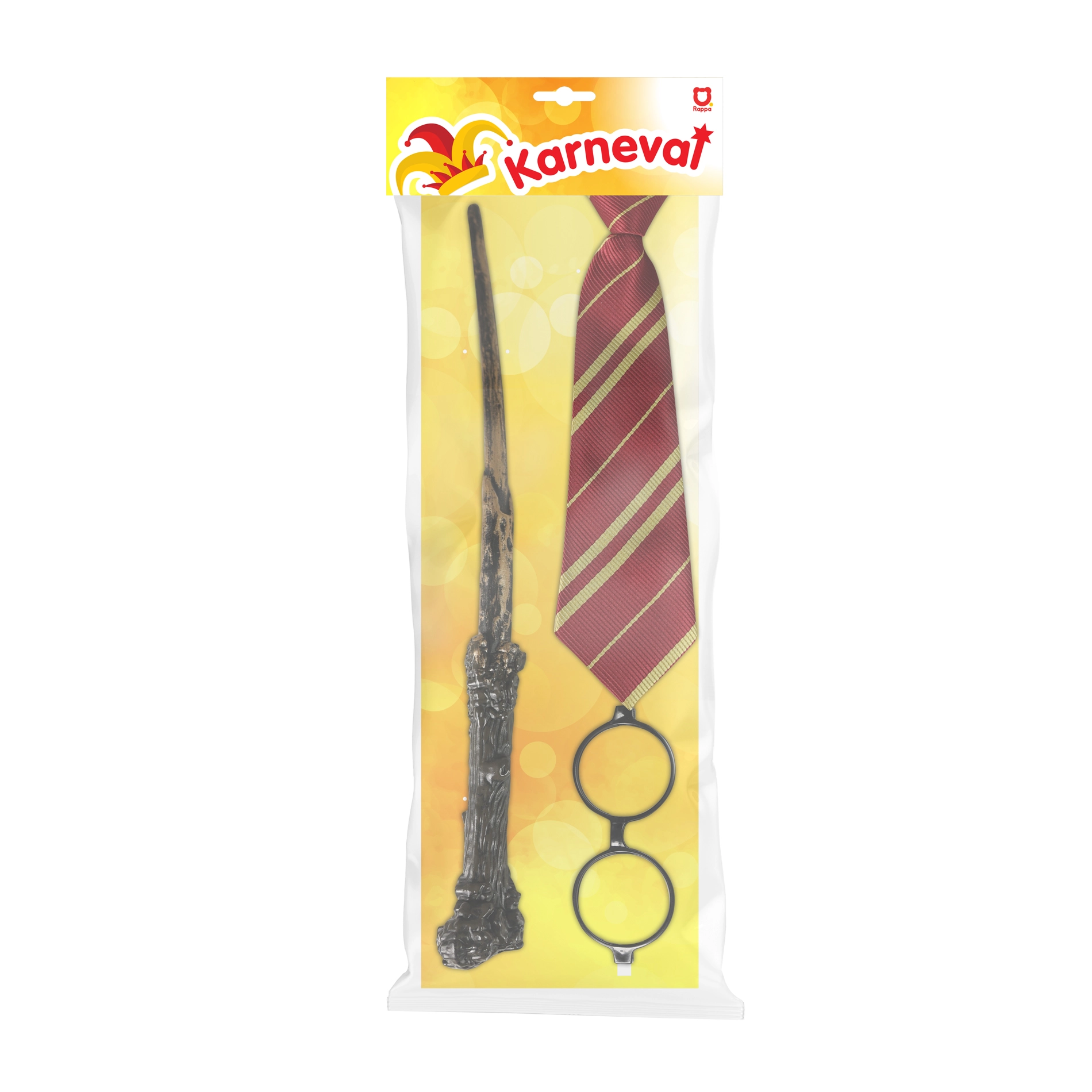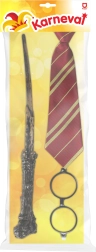 Prepárate para una aventura mágica con el set de mago completo. Gracias a la ligera varita de plástico, las gafas con estilo y la corbata llamativa, crearás un look auténtico al instante. Ideal para niños y adultos que quieren completar su disfraz de forma fácil y efectiva.