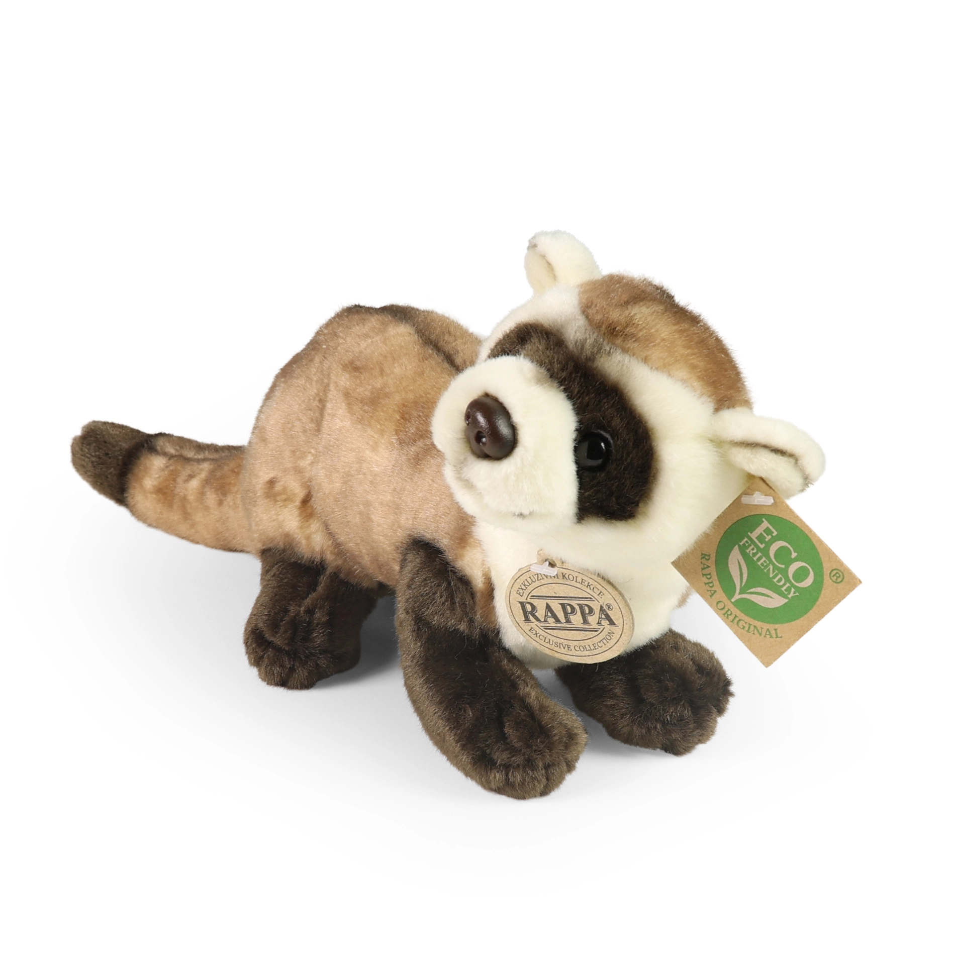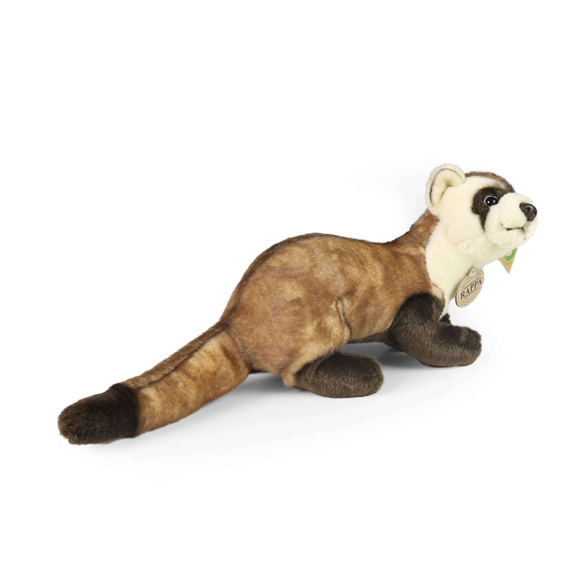 El relleno eco-friendly de botellas PET recicladas es seguro incluso para los más pequeños, indistinguible al tacto del relleno convencional y respetuoso con la naturaleza. Si buscas un peluche sostenible y de calidad, el hurón RAPPA es una gran elección.
