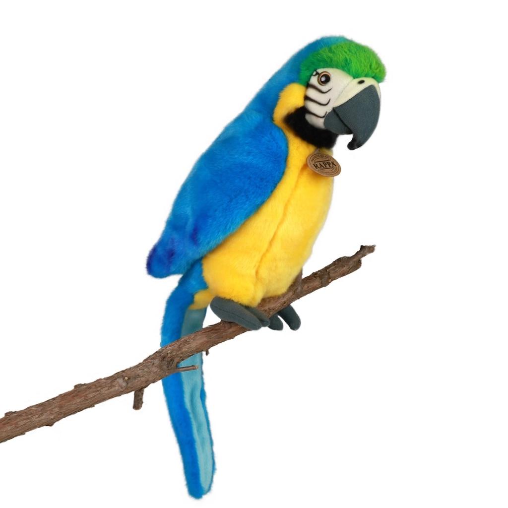 Adorable loro guacamayo de peluche de 28 cm, hecho de peluche suave y de alta calidad, que encantará a pequeños y mayores amantes de los animales. Gracias a su confección artesanal, luce realista y es muy suave al tacto. El juguete utiliza relleno eco friendly de botellas PET recicladas, es seguro para los más pequeños y pertenece a la colección exclusiva de la marca RAPPA.