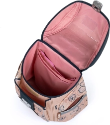 La disposición práctica del espacio interior con separador y múltiples bolsillos ayuda a mantener libros, cuadernos y el almuerzo ordenados en su lugar. Los elementos reflectantes aumentan la visibilidad del niño en los trayectos de ida y vuelta al colegio. La mochila se adapta a estaturas más pequeñas y “crece” con el niño gracias a las correas ajustables.