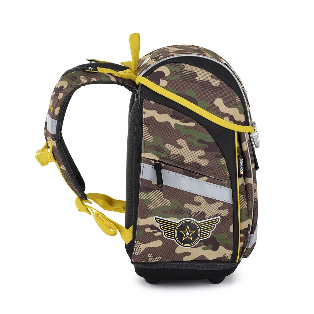 La mochila escolar Premium Light Helicóptero está diseñada para escolares más pequeños a partir de una altura de aprox. 121 cm. Gracias a los materiales aligerados, pesa solo 0,9 kg y aun así ofrece una fabricación robusta, espacio suficiente y una distribución pensada de los bolsillos para el equipo escolar diario.