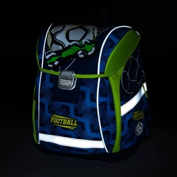 La mochila está equipada con elementos reflectantes, separador interior y numerosos bolsillos para organizar el material escolar.