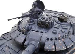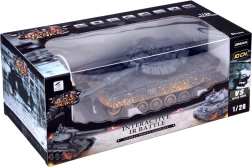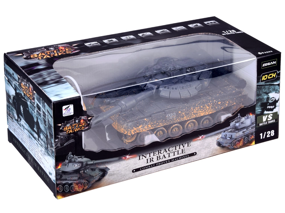 El modelo se alimenta con la batería incluida, lo que reduce los costes de funcionamiento. Los LED frontales, los indicadores traseros del estado de la batalla y los sonidos auténticos de motor y disparo intensifican la sensación de acción. También incluye una figura de tanquista con ametralladora y escotilla de la torrecilla abatible.
