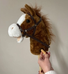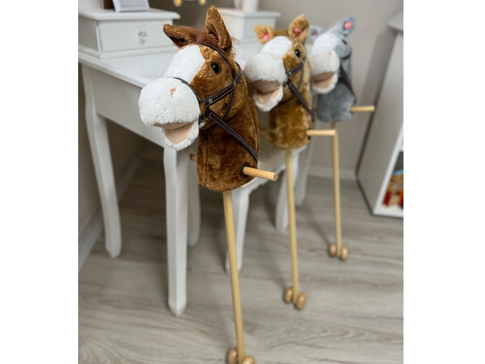 El caballito de palo permite a los niños imitar la equitación, fomentando su desarrollo físico y habilidades motoras.