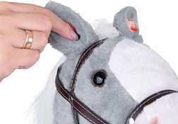 Los botones situados en las orejas activan los sonidos de relincho y galope, mientras el caballito abre y cierra la boca, lo que aumenta el realismo del juego.