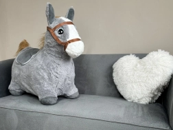 El saltador de peluche con forma de caballo JOKOMISIADA es el compañero ideal para el juego activo en casa o en el jardín. Su superficie suave y agradable al tacto combinada con una construcción sólida ofrece a los niños comodidad y seguridad al saltar. Gracias a los prácticos agarres en forma de orejas y al divertido silbato entre ellas, los niños disfrutarán de horas de diversión segura.
