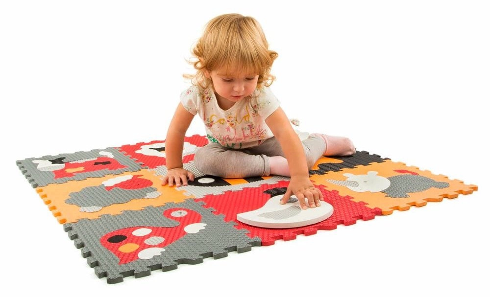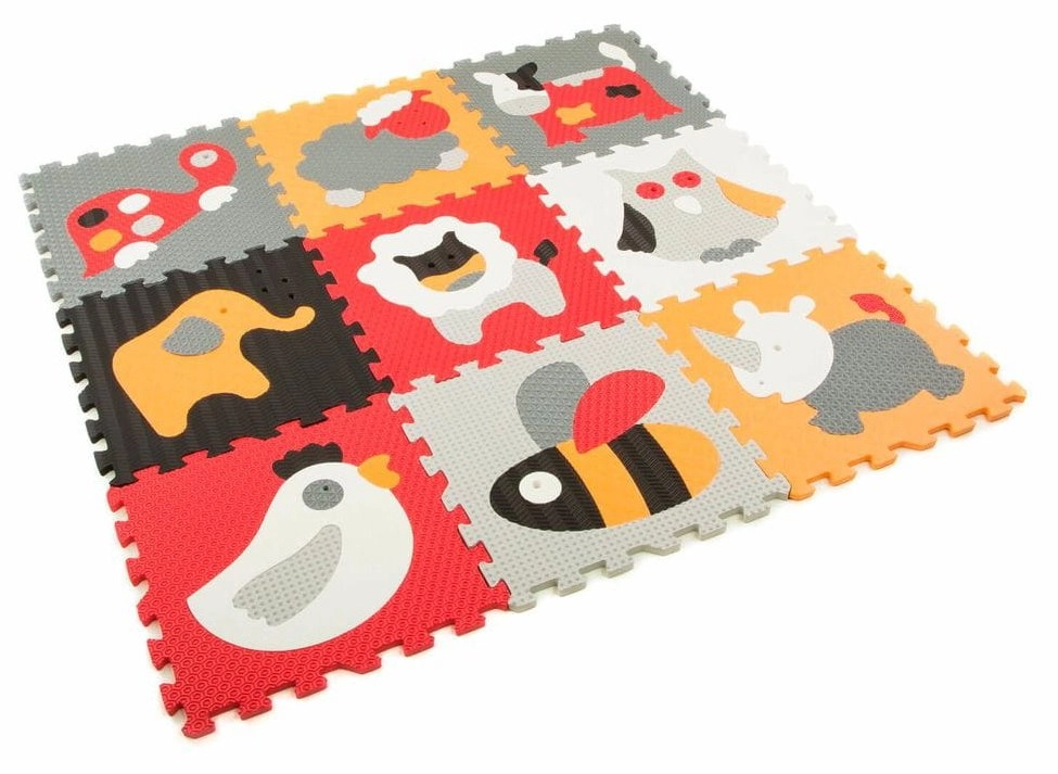 Los puzzles de espuma con motivos de animales en combinación de gris y rojo son una excelente opción como alfombra de juego para el dormitorio infantil y el salón. Cada ilustración consta de cinco a ocho piezas extraíbles, de modo que los niños ejercitan la motricidad fina y el pensamiento lógico. La base es suave, segura, de fácil mantenimiento y, gracias a sus propiedades aislantes, protege del frío del suelo.